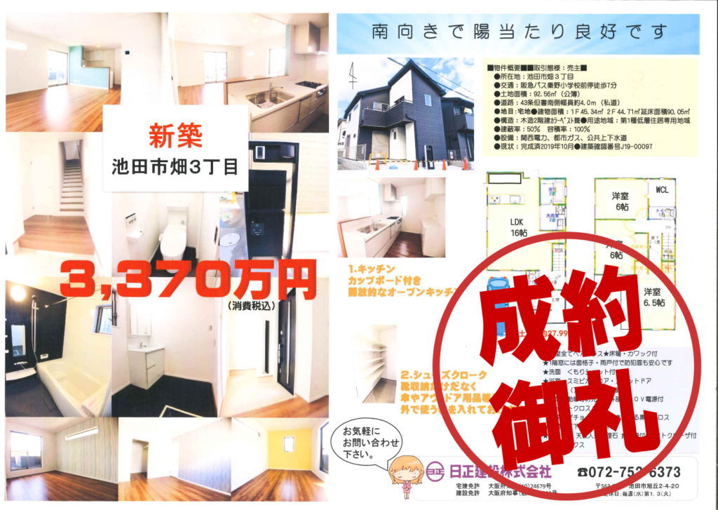 【成約御礼】豊中市岡上の町新築戸建